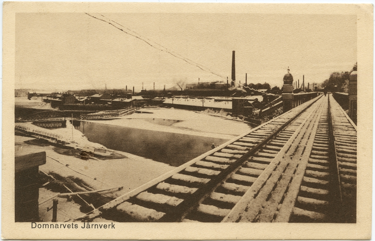 Titel: Järnvägsbro och järnverksindustri i Domnarvet.
