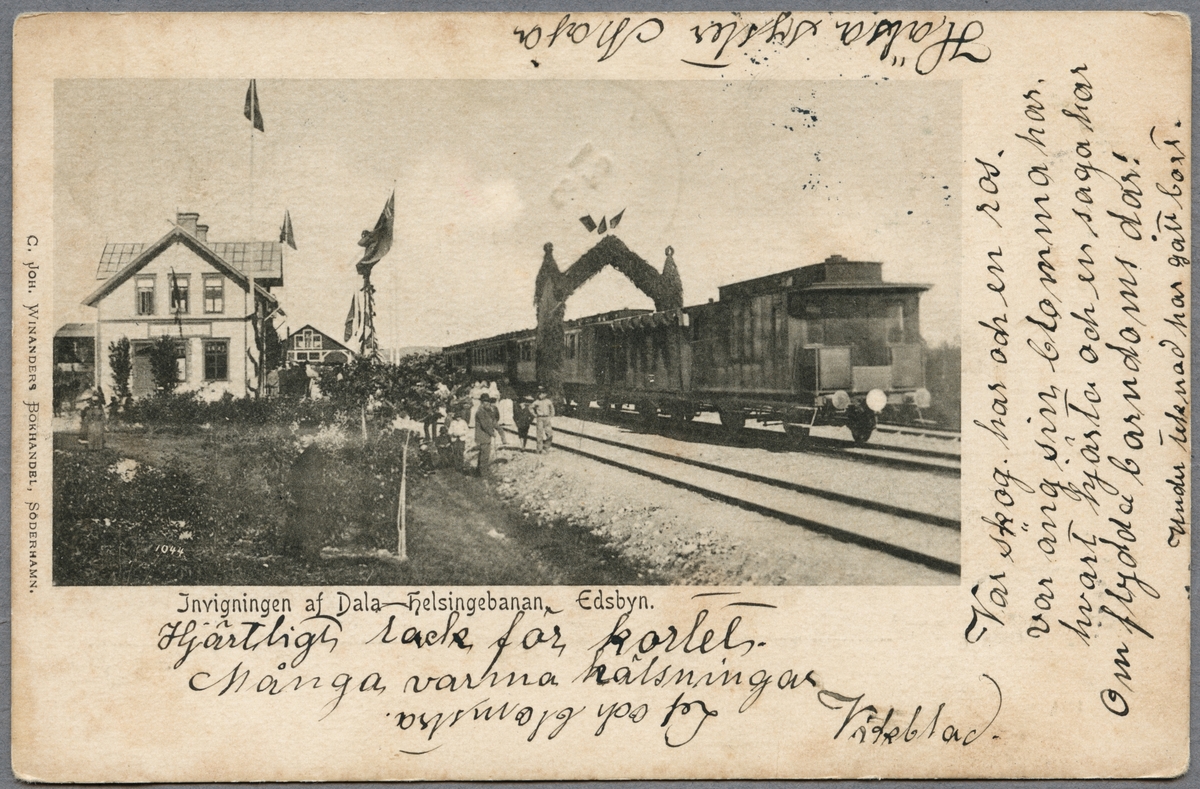 Titel: Invigning av Dala - Hälsinglands Järnväg i Edsbyn.