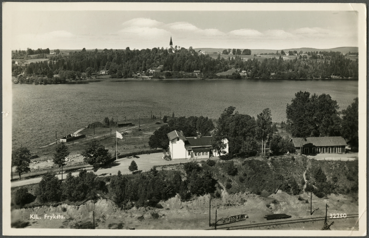 Titel: Vy över Fryksta med före detta stationshuset i förgrunden.