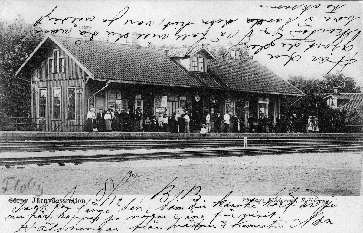 Titel: Järnvägsstationen i Floby. Vid järnvägsspåret mellan Skövde och Herrljunga.