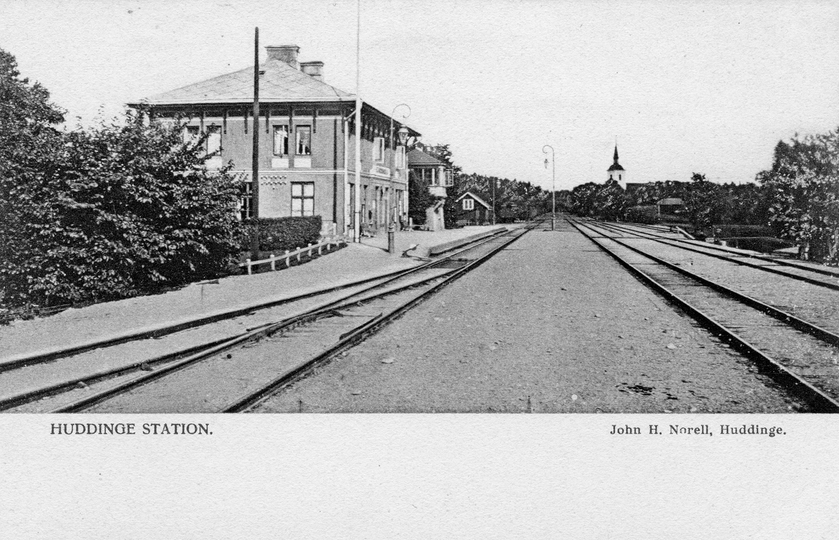 Järnvägsstationen i Huddinge. Vid järnvägsspåret mellan Stockholm C och
