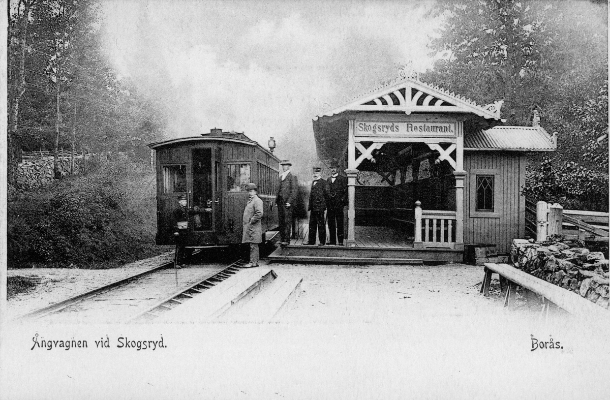 Titel: Järnvägsstation ångvagn vid Skogsryd
