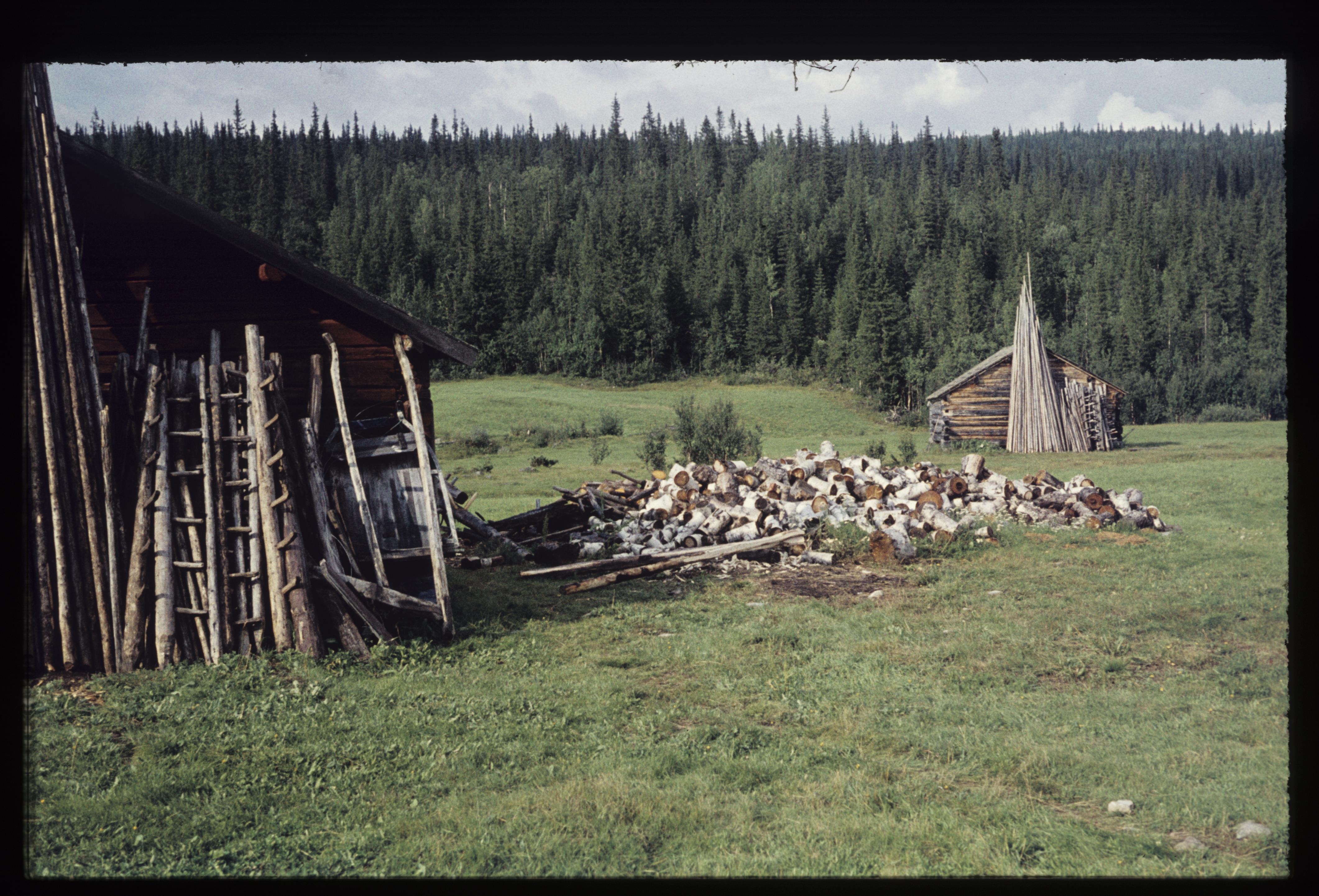 Vid inloppet till Lill-Dabbsjön. Hölador, störar och ved.