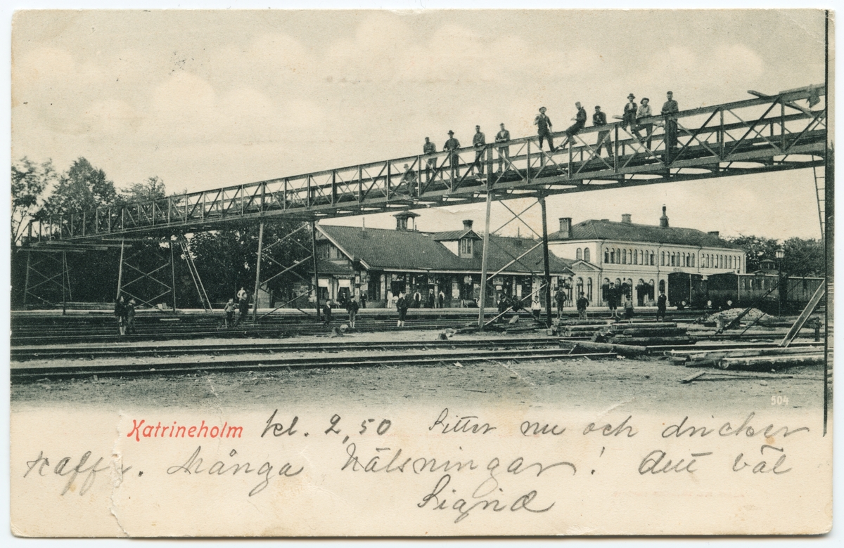 Titel: Katrineholm med stationshuset och hotellet.