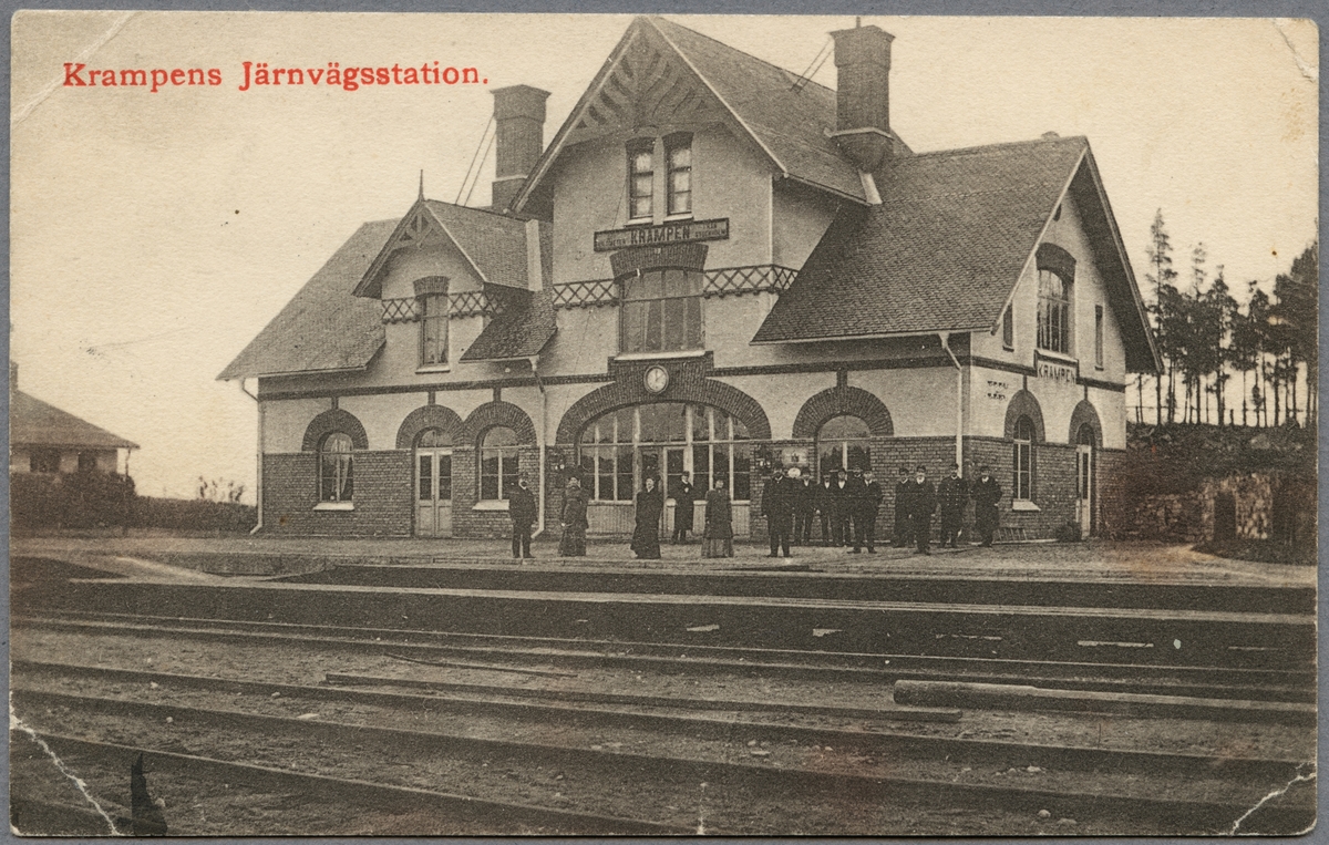 Titel: Personal uppställd framför Krampens station.