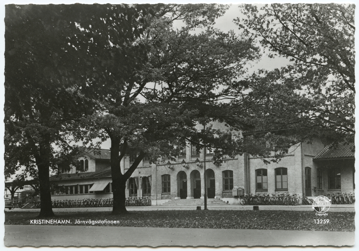 Titel: Järnvägsstationen i Kristinehamn sett från framsidan.