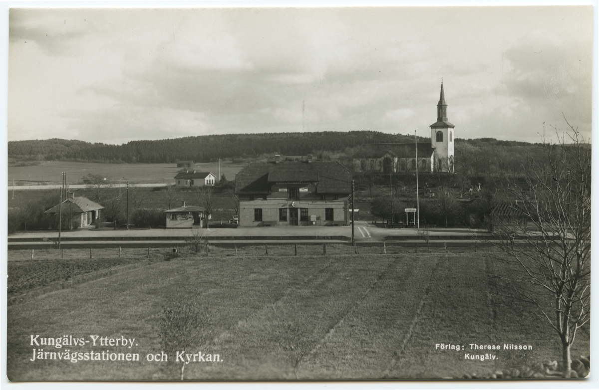 Titel: Kungälvs-Ytterby station med kyrkan i bakgrunden.