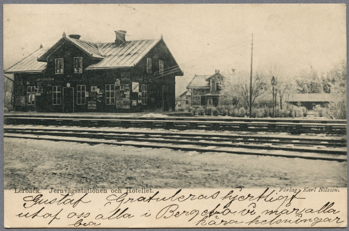 Titel: Järnvägsstationen och hotellet i Lerbäck.