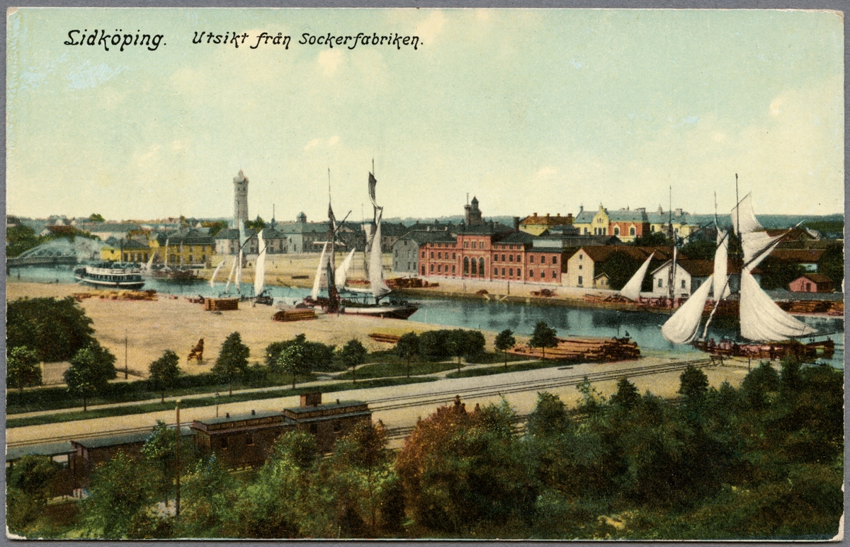 Utsikt från Sockerfabriken i Lidköping, med Hamnen och Vattentornet.