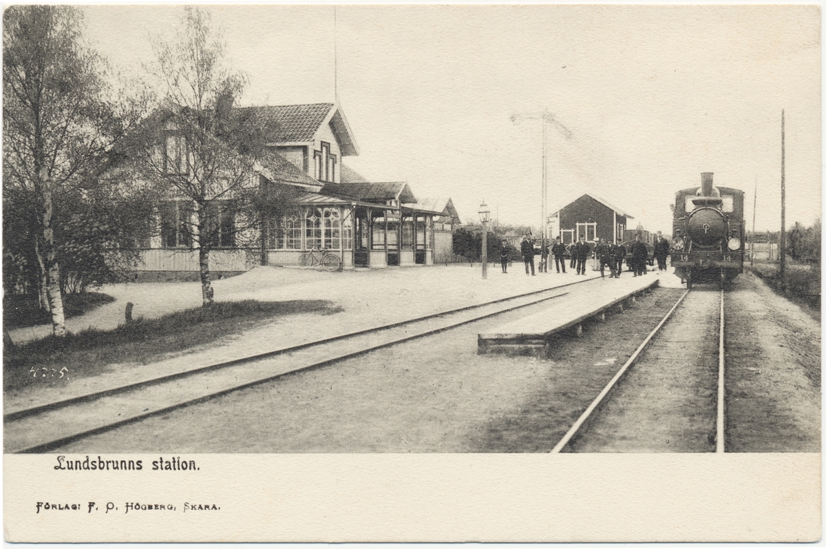 Lundsbrunn station, med ånglok Västergötland-Göteborgs Järnvägar, VGJ lok 14.
