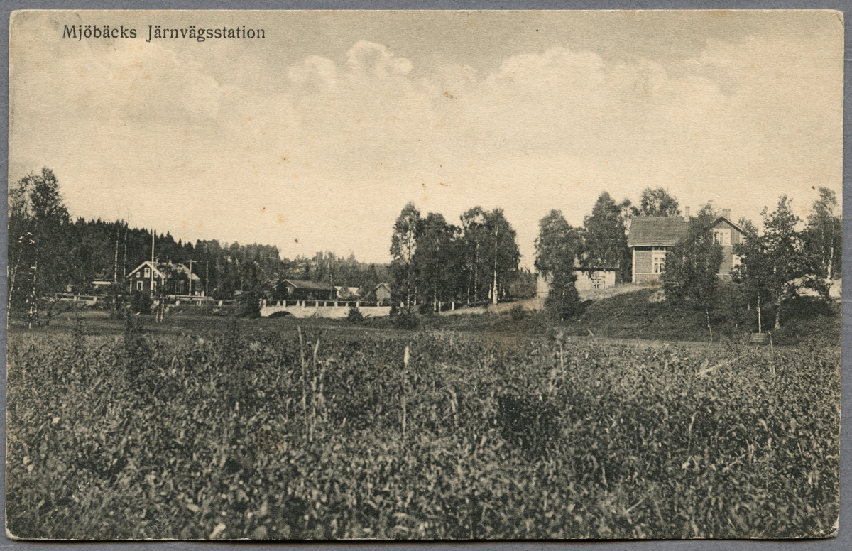 Stationsbyggnaden till vänster i bild, tillhörande Mjöbäck.