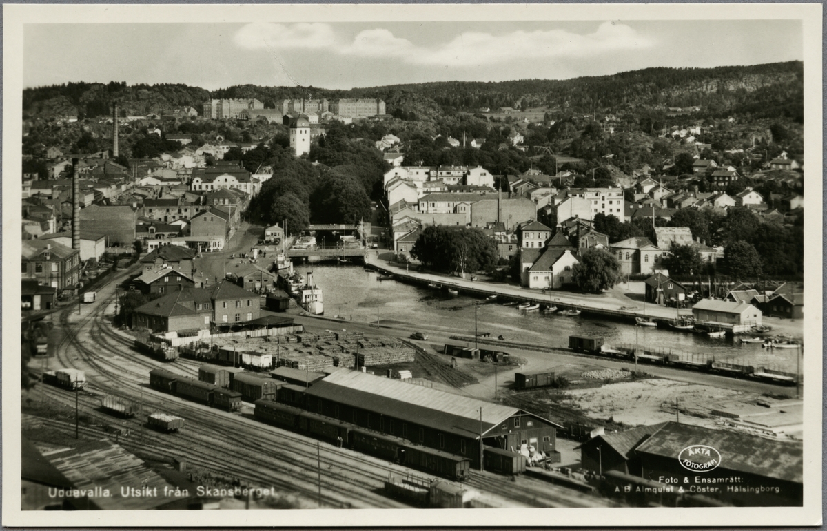 Titel: Utsikt från Skansberget över Uddevalla hamn efter att Banhallen rivits.