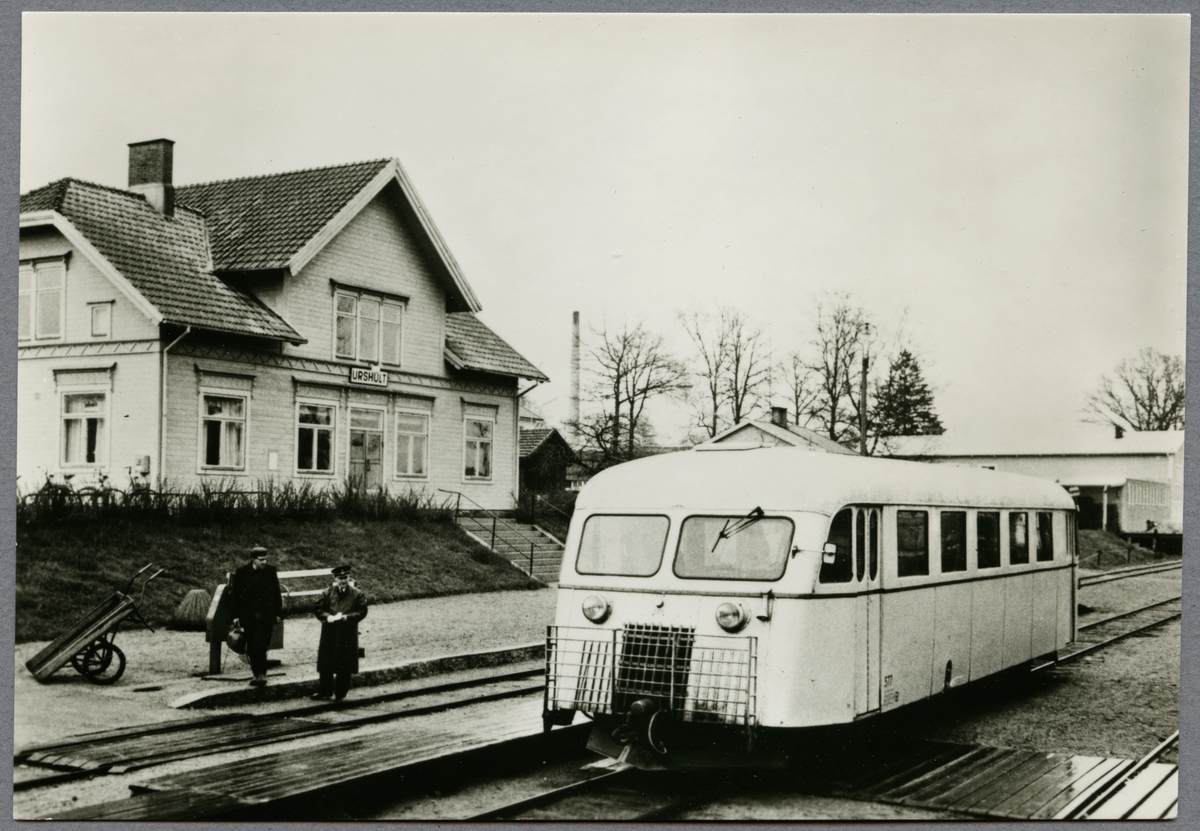 Motorvagnen Yo1t som persontåg 2858Y vid Urshult järnvägsstationen.