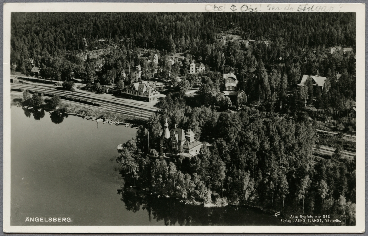 Flygbild över Ängelsberg, med slottet Ulvaklev i förgrunden.