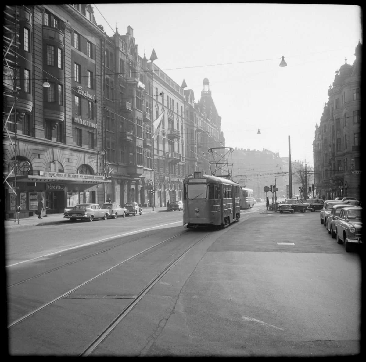 Aktiebolaget Stockholms Spårvägar, SS A26 486 "mustang" linje 5 Karlberg - Gustaf Adolfs torg - Östra station på Birger Jarlsgatan.