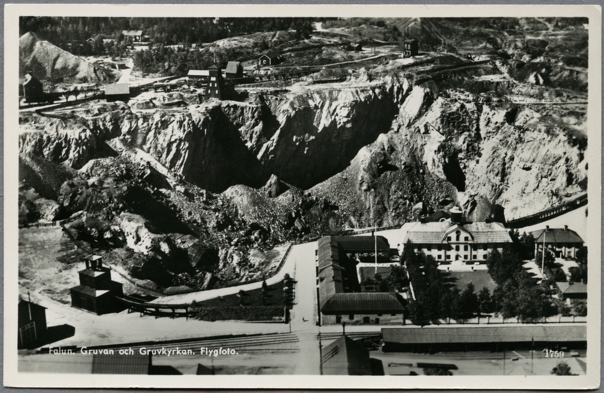Titel: Flygvy över gruvan i Falun inkluderat gruvkyrkan.