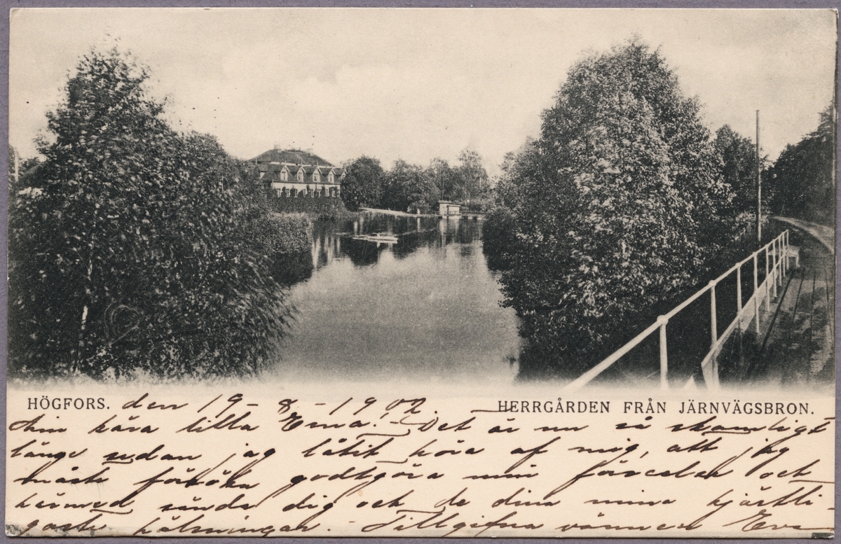 Titel: Högfors herrgård från järnvägsbron.