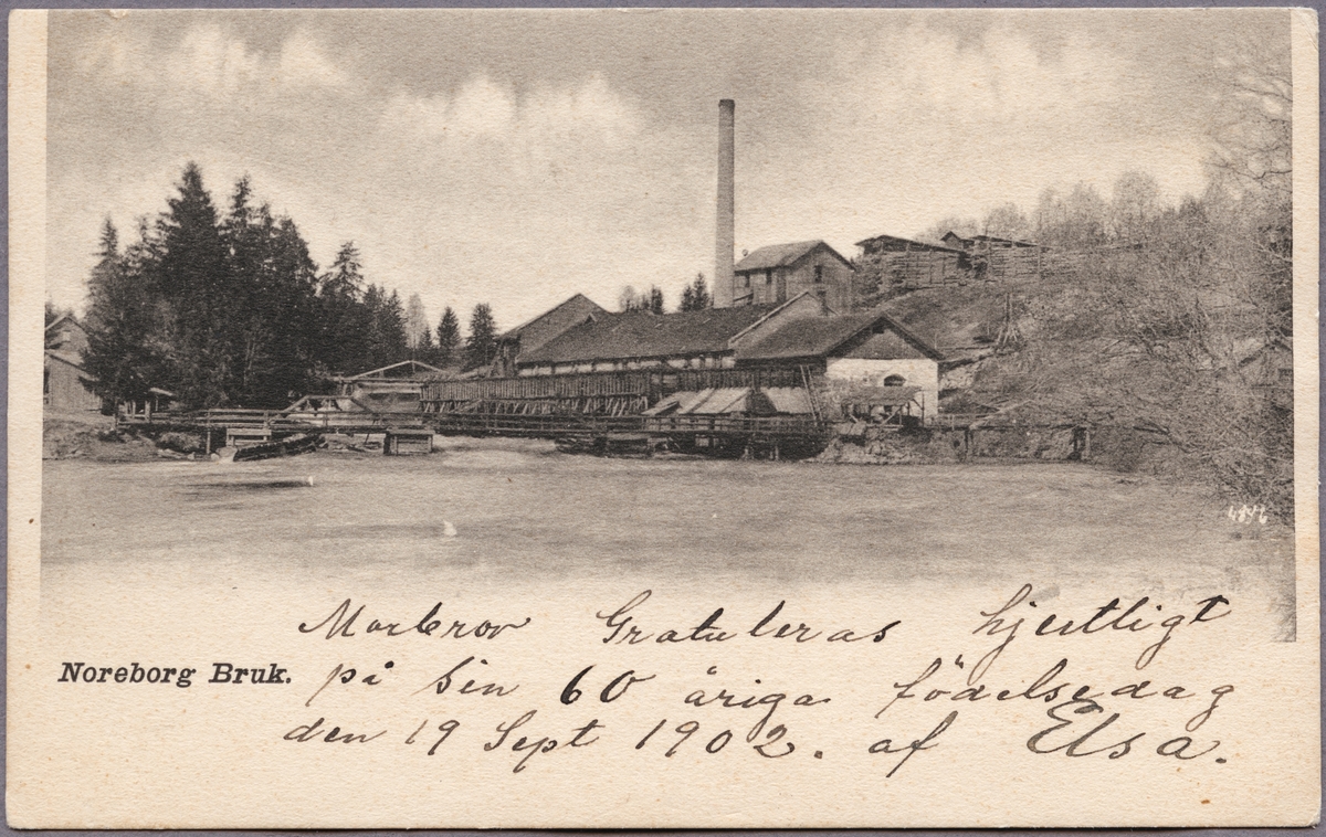Noreborgs bruk. Åren 1751-1885 bedrevs här Järnbruk, och därefter träsliperi mellan 1887-1926.