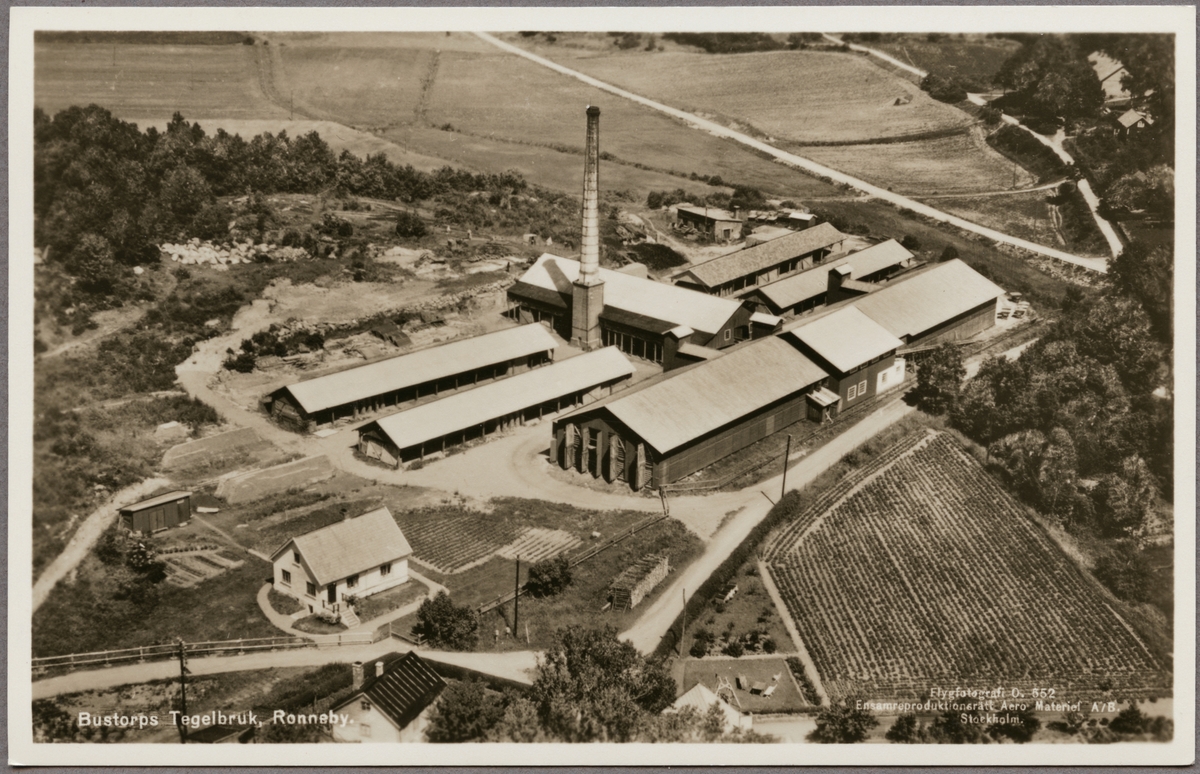 Flygfoto över Bustorps Tegelbruk, Ronneby.