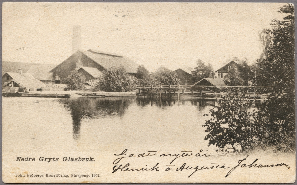 Titel: Nedre Gryts Glasbruk, beläget vid sjön Nedre Gryten, i Björnhammaren.
