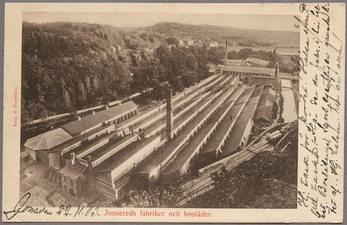 Titel: Vy över Jonsered fabrik.