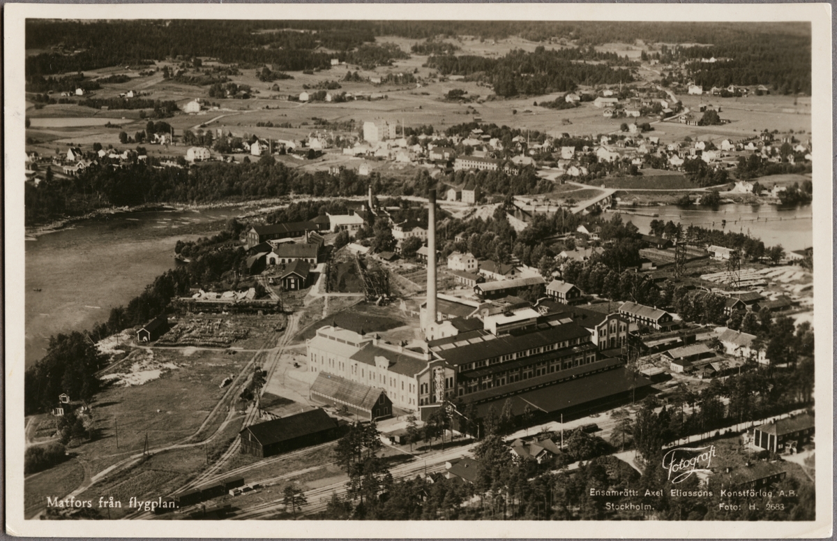 Flygbild över Matfors med omnejd, i förgrunden ses pappersbruket.
