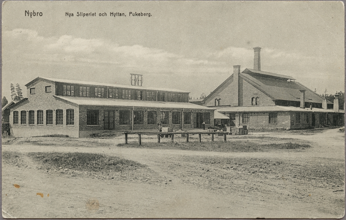 Titel: Sliperiet och hytta vid Pukebergs glasbruk i Nybro.