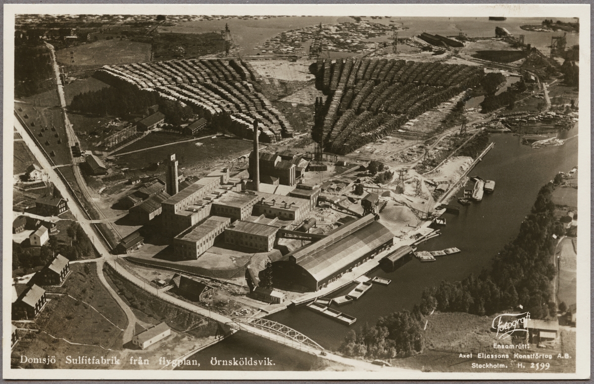 Flygfoto över Domsjö Sulfitfabrik i Örnsköldsvik.