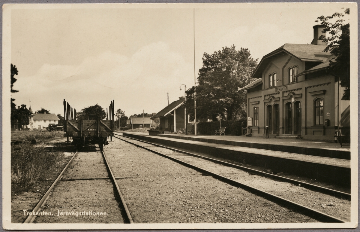 Stationen vid Trekanten. Kalmar Järnväg, KJ godsvagn 6712.