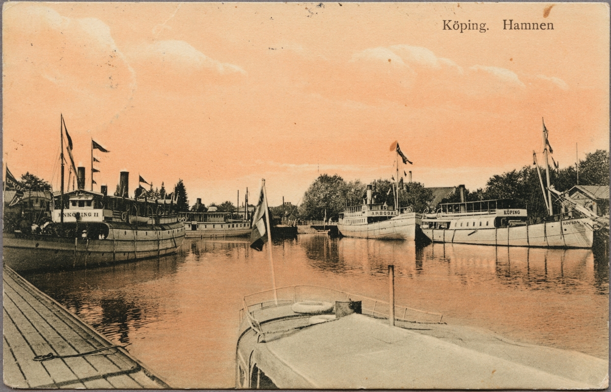 Ångbåtarna "Enköping I"I, "Arboga II", "Köping", med flera, ligger i hamnen i Köping.
