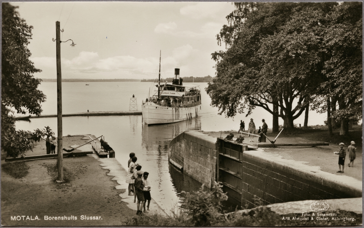 "Wilhelm Tham" anlöper Borenshults slussar i Göta Kanal vid Motala.