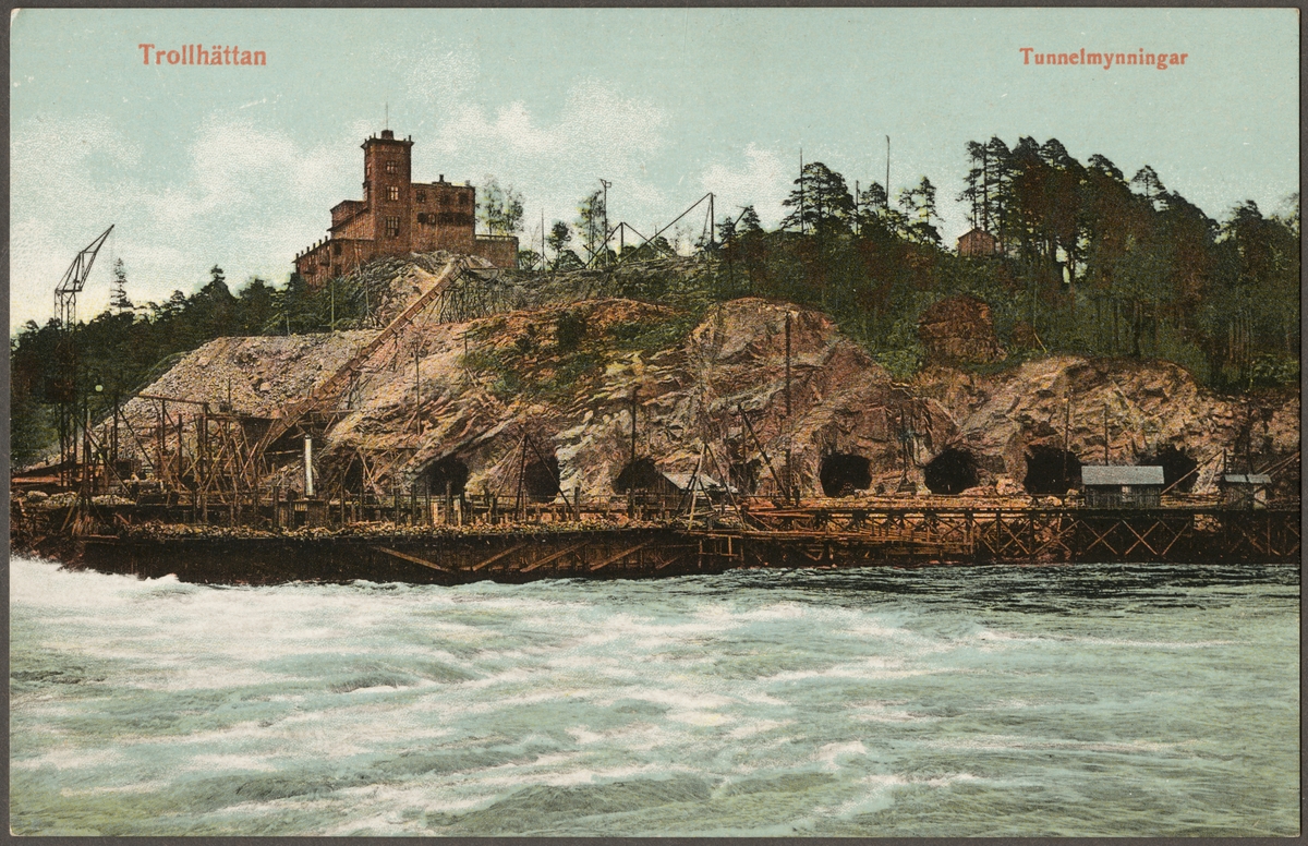 Titel: Olidan kraftverks tunnelmynningar vid Götaälv i Trollhättan.