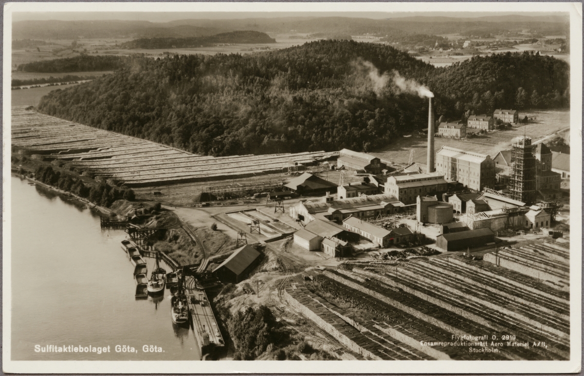 Flygfoto över sulfitfabriken i Göta.