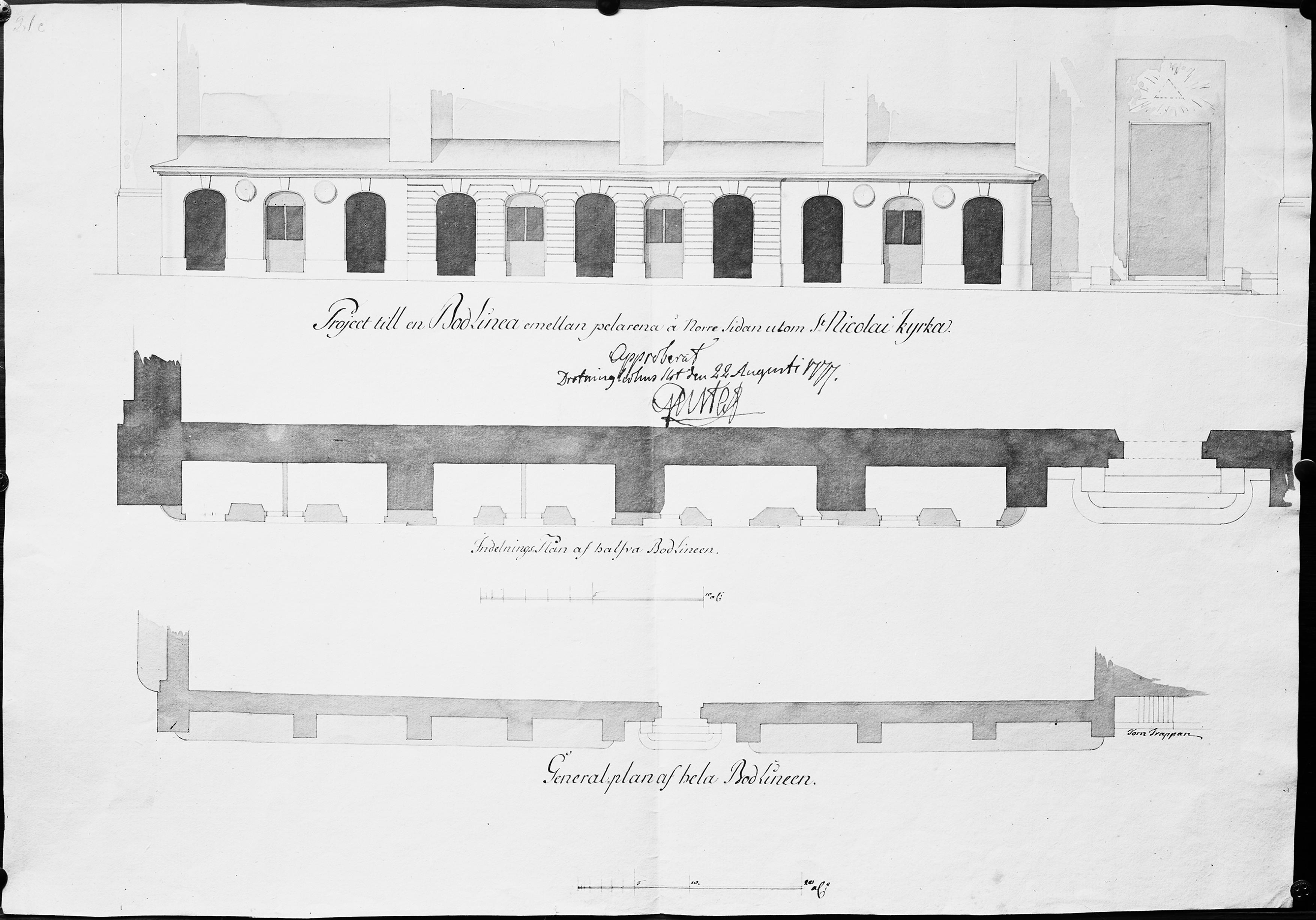 Förslag till butikslägenheter på norra sidan, foto efter ritning av Palmstedt.