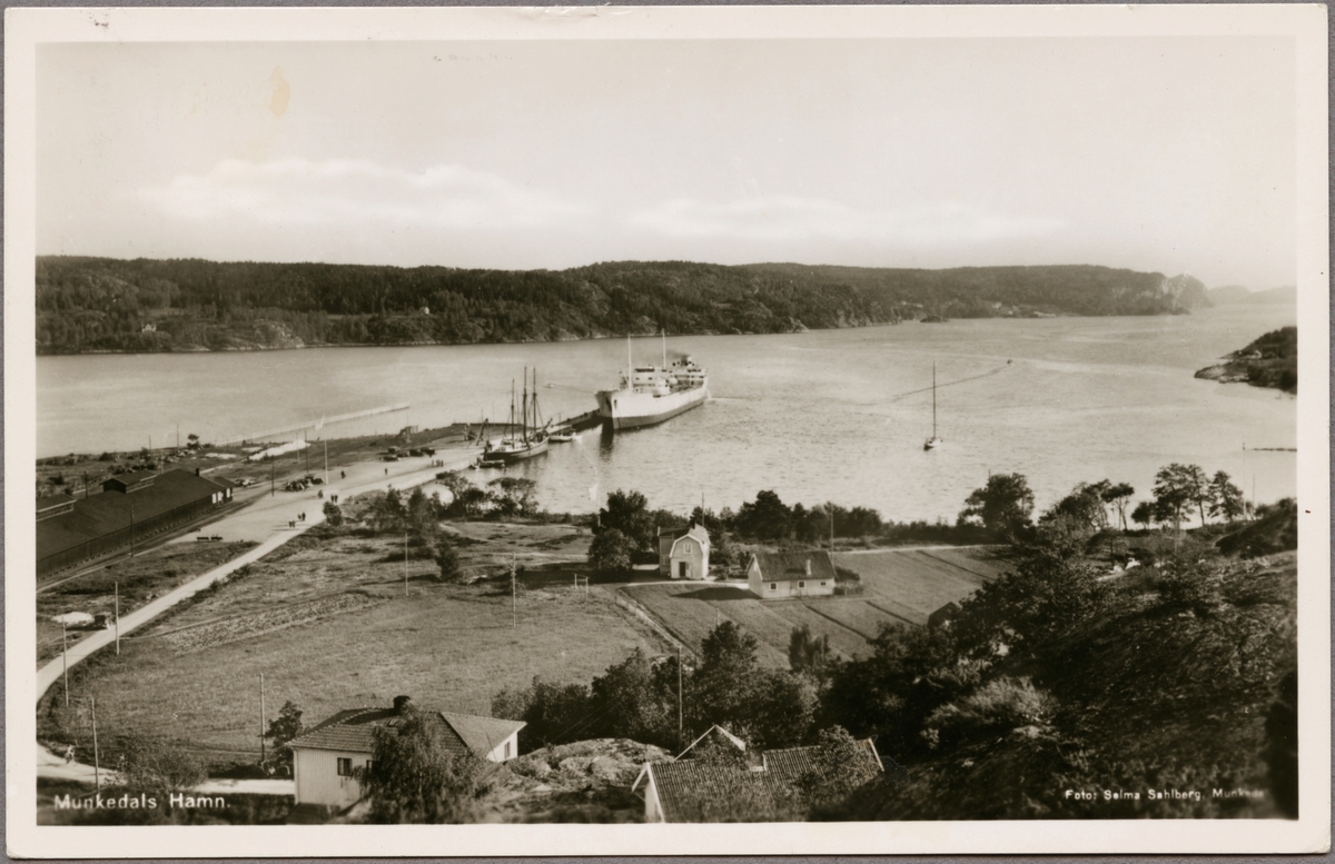 Vy över hamn och fartyg vid Saltkällefjorden.