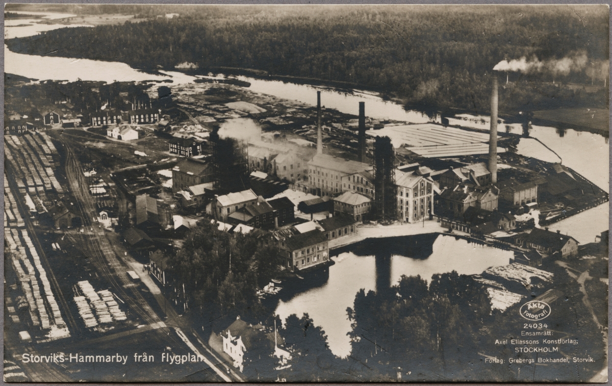 Flygfoto över pappersmasseindustri i Hammarby, Gästrikland.