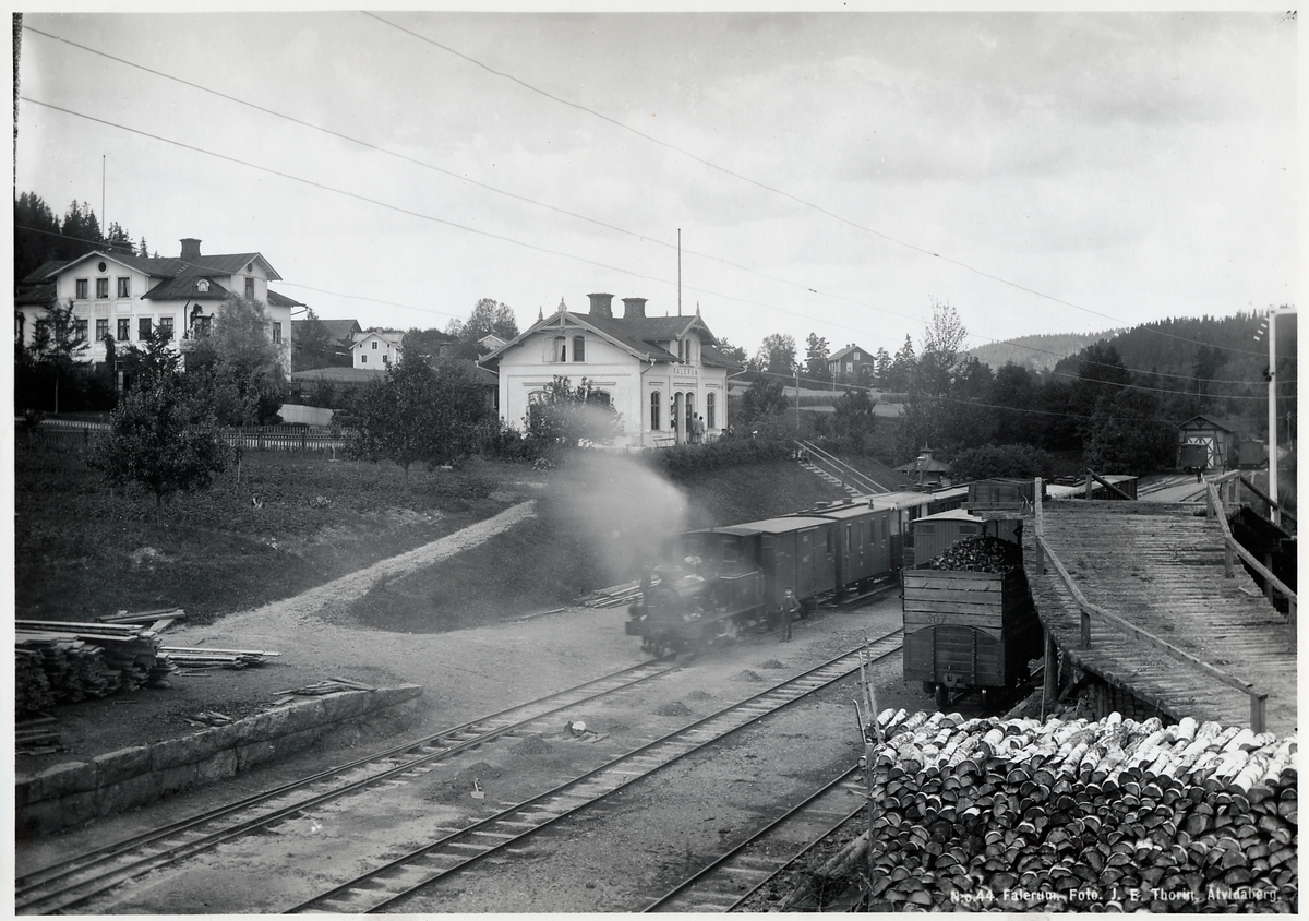 Tågmöte vid Falerum station. Västervik - Åtvidaberg - Bersbo Järnväg, WÅBJ lok 6 "Blixten" eller WÅBJ lok 7 "Kometen".