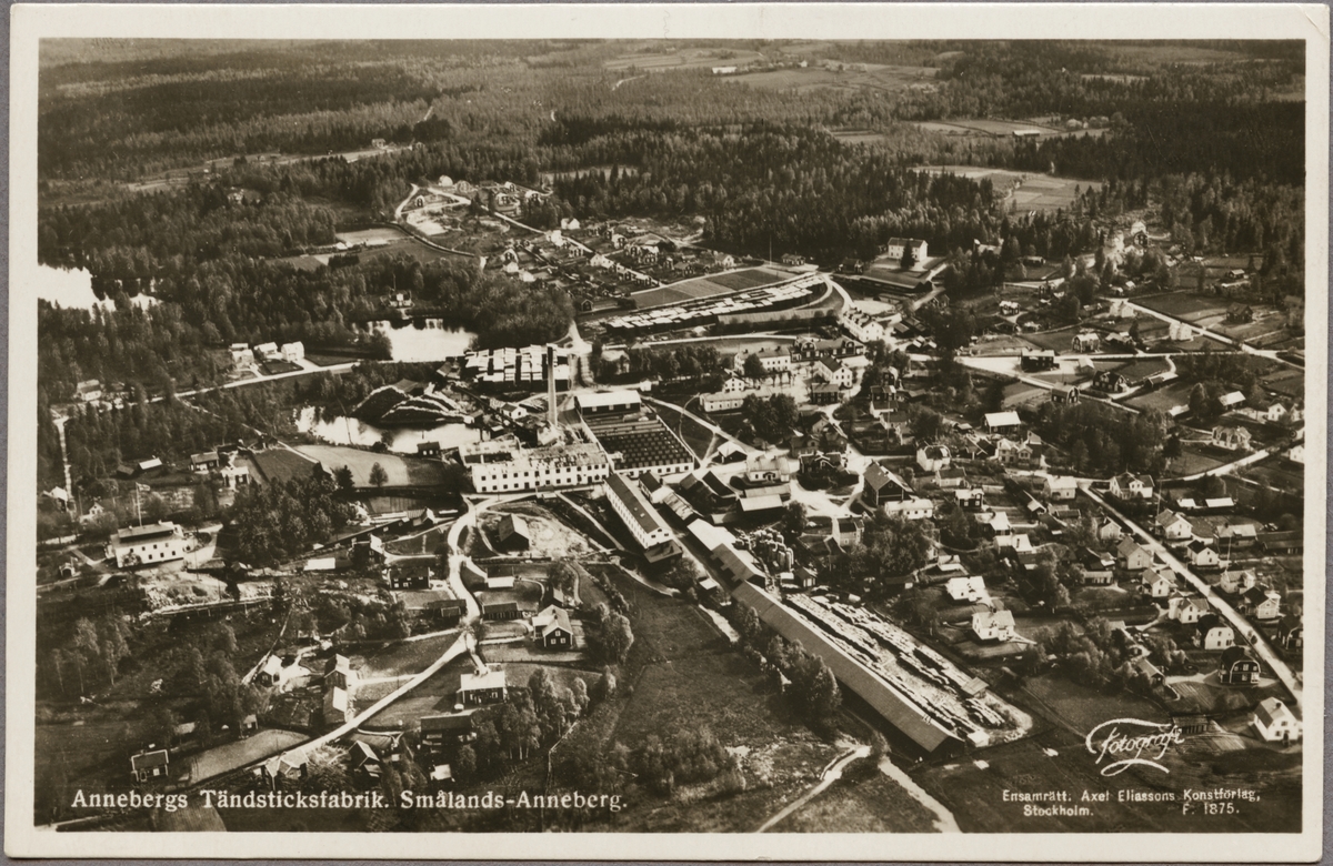 Titel: Flygfoto över Anneberg tändsticksfabrik.
