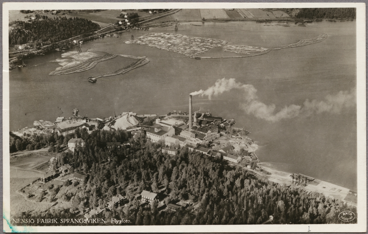 Flygvy av Nänsjö sulfatfabrik, Sprängsviken vid Ångermanälven.