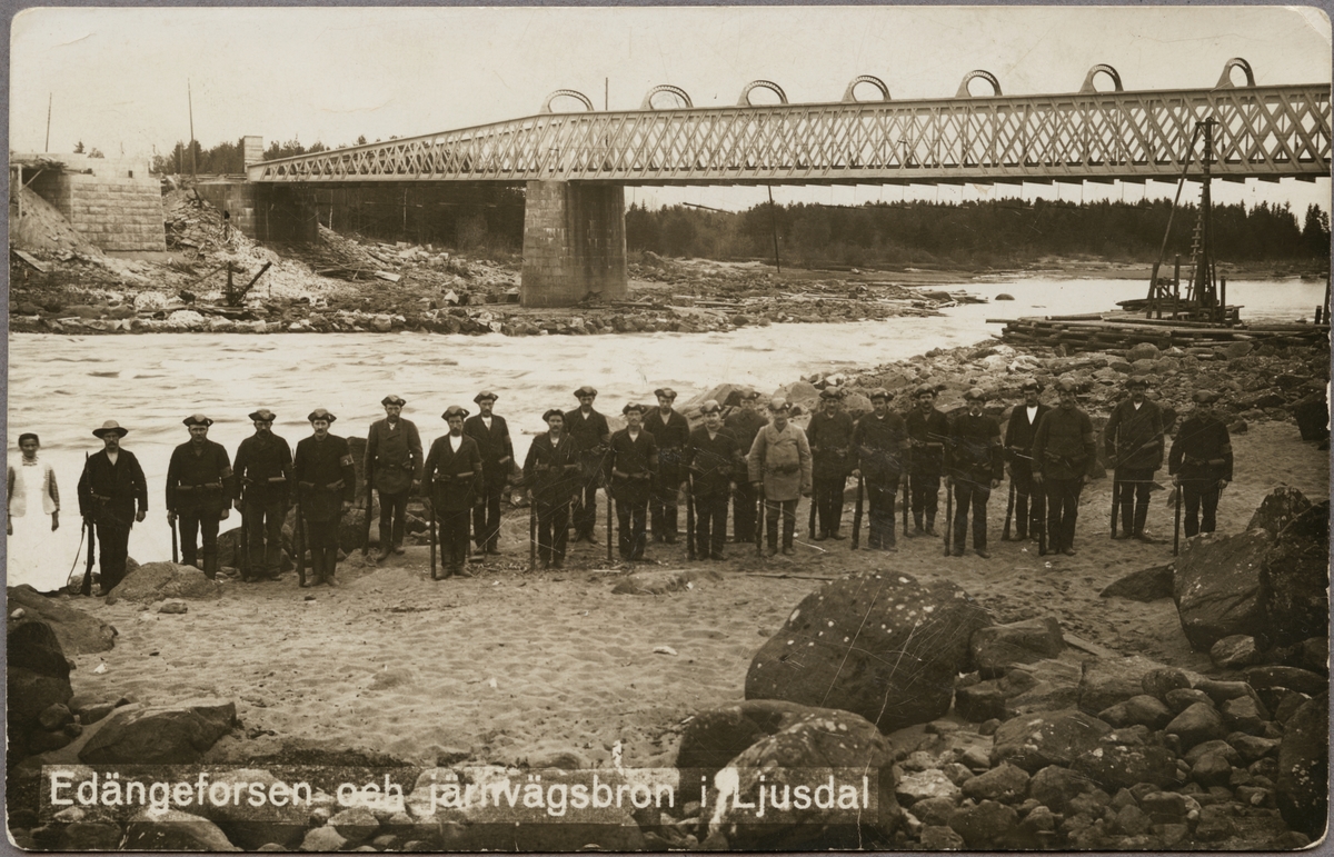 Gruppfoto av militärer vid Ljusnan, strax sydöst om Ljusdal.