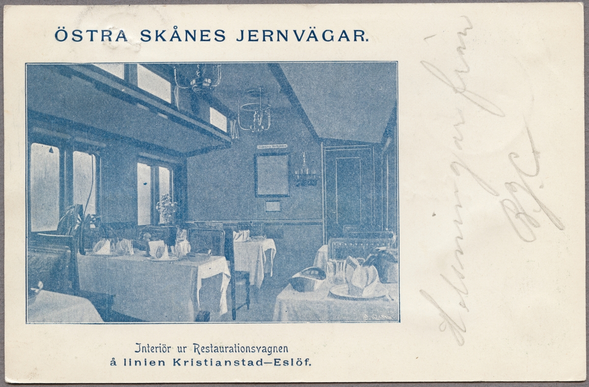 Titel: Interiör från en restaurangvagn mellan Kristianstad och Eslöv.