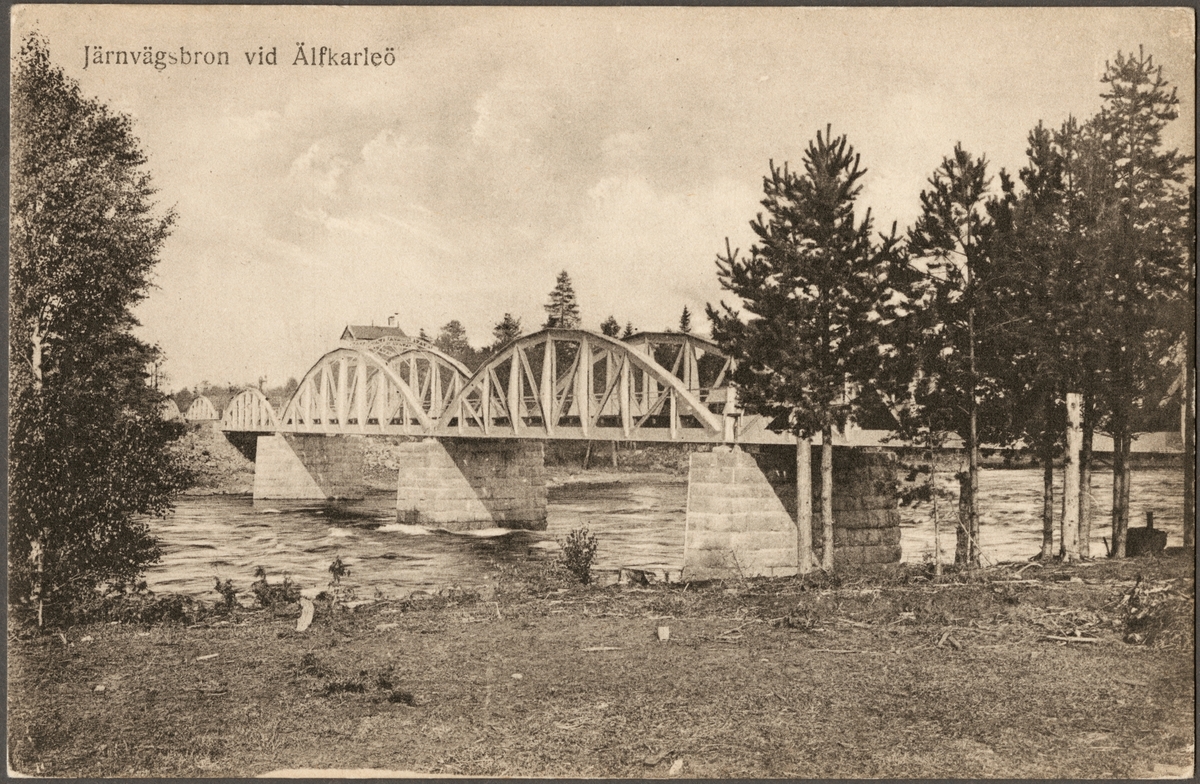 Titel: Järnvägsbron över Dalälven på linjen mellan driftpats Älvkarleö och driftplats Älvkarlebyverket.