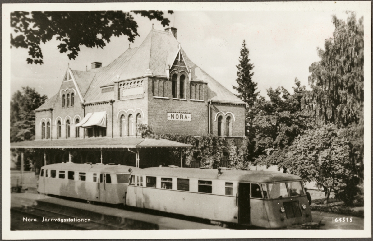 Nora station, med Nora Bergslags Järnväg, NBJ Yo1.