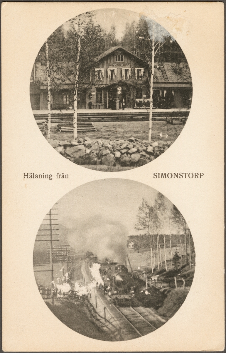 Titel: Bilder på stationsområde och järnvägslinje med trafikerande tåg.