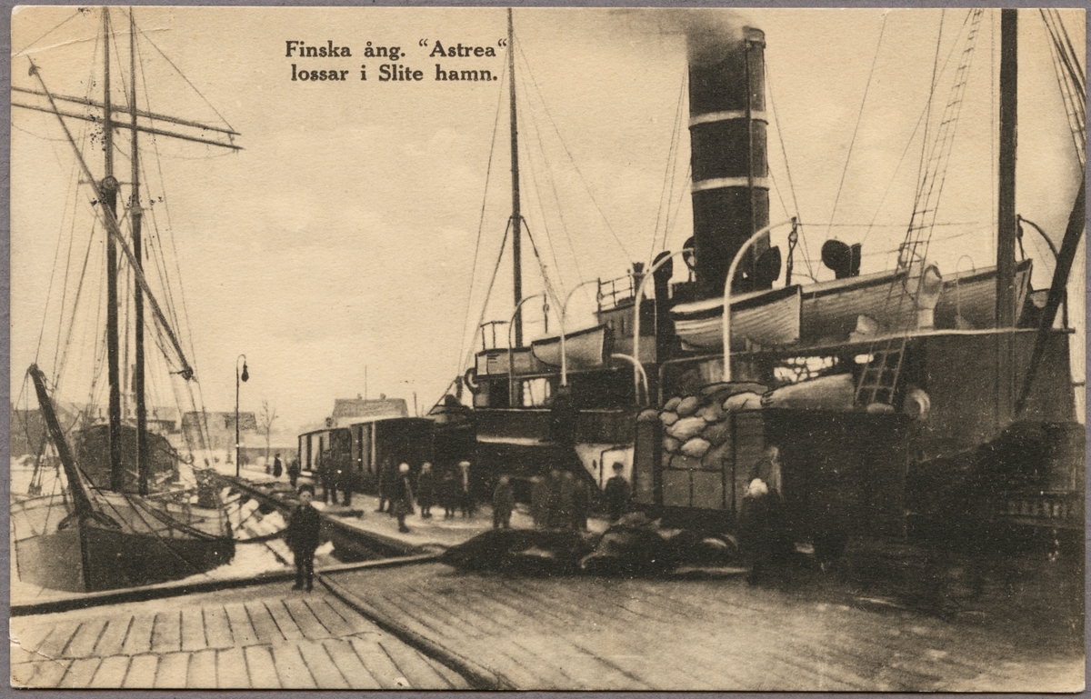 Titel: Segel och ångfartyg i Slite hamn.