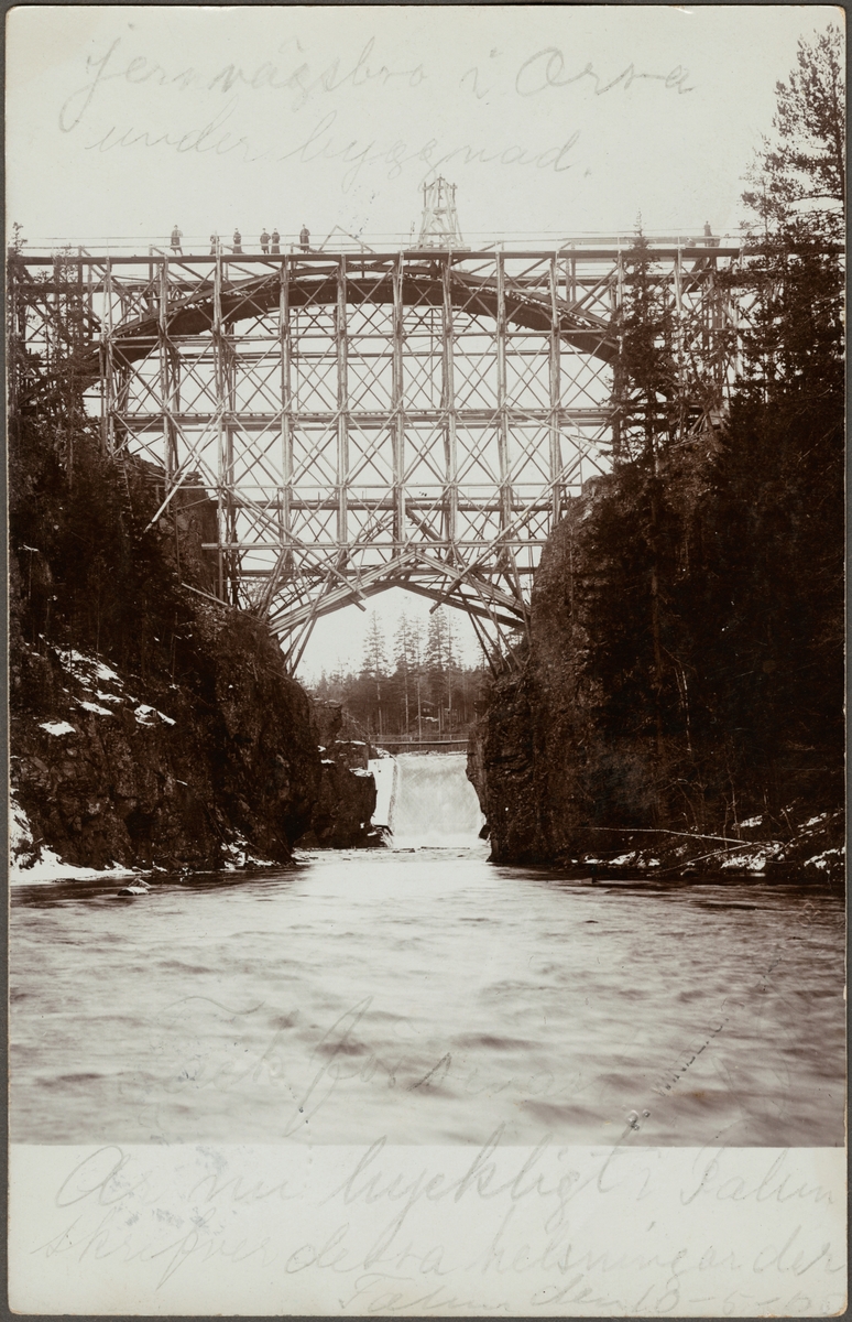 Titel: Järnvägsbron vid Storstupet under byggnad.