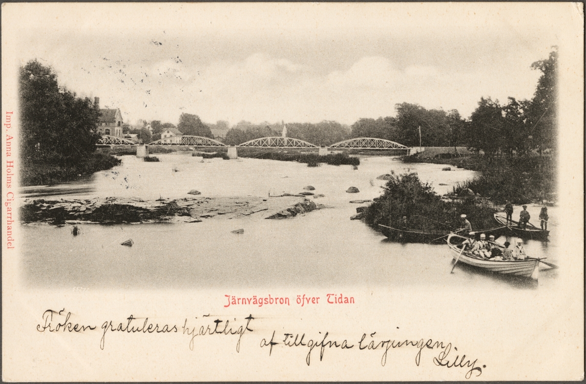Titel: Järnvägsbro över Tidan på linjen mellan Mariestad och Lugnås.