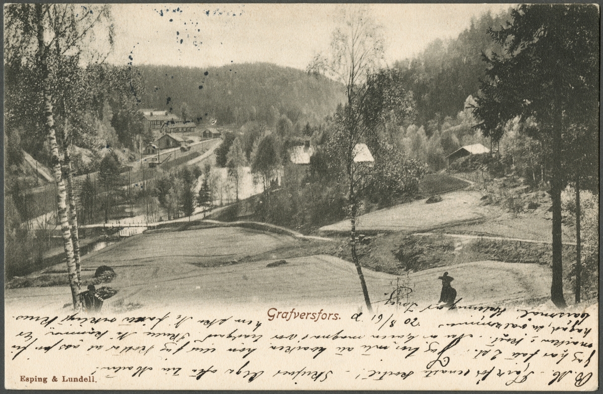 Titel: Vy över Graversfors och järnvägsstationen till vänster.