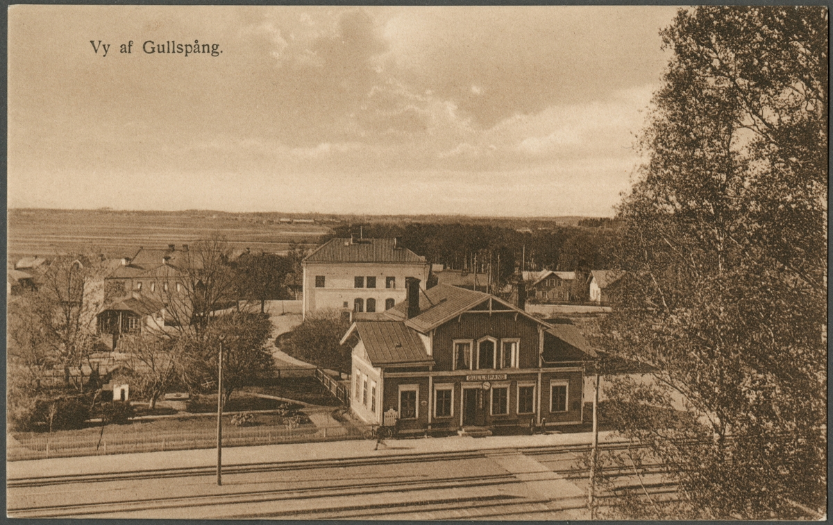 Vy över Gullspång, järnvägsstationen med omgivning.