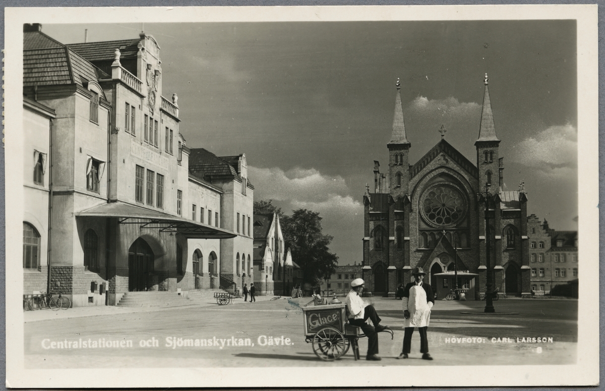 Gävle centralstation och Sjömanskyrkan.
